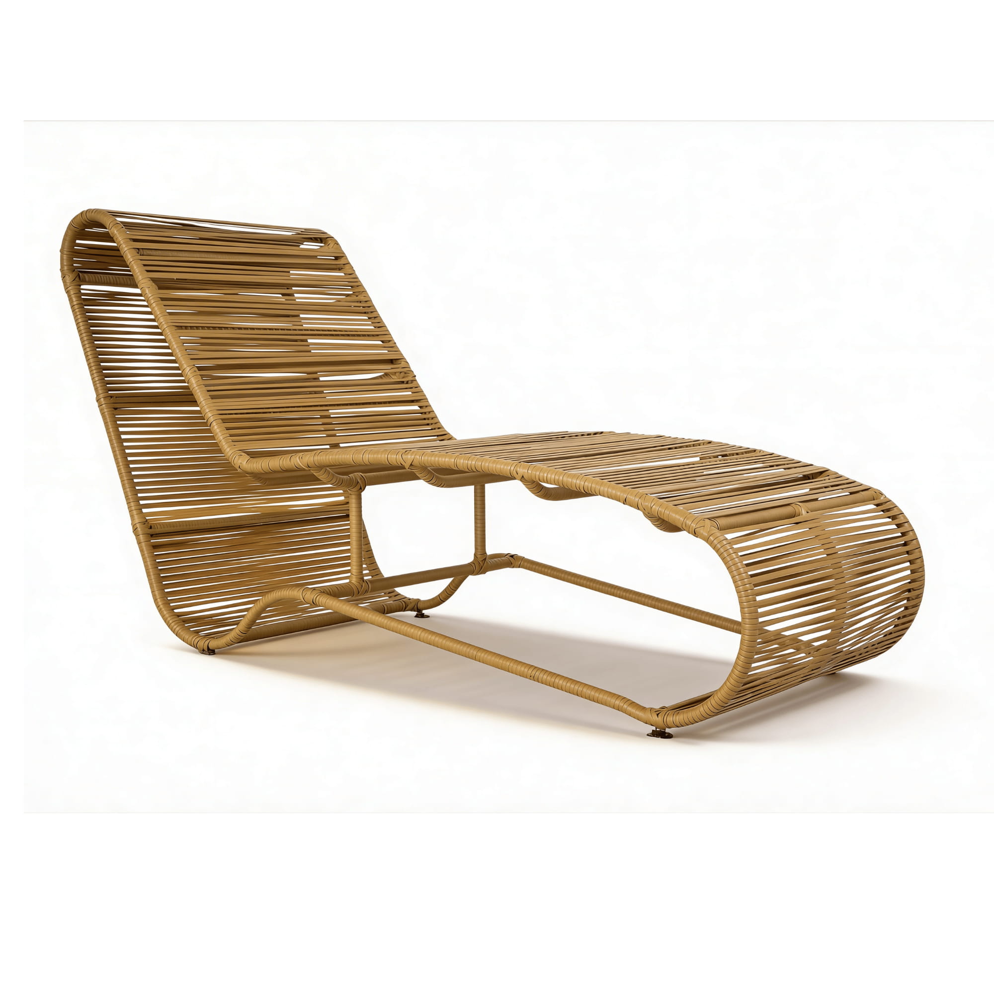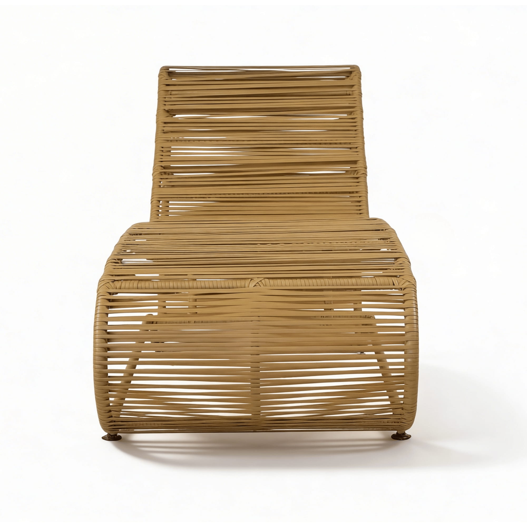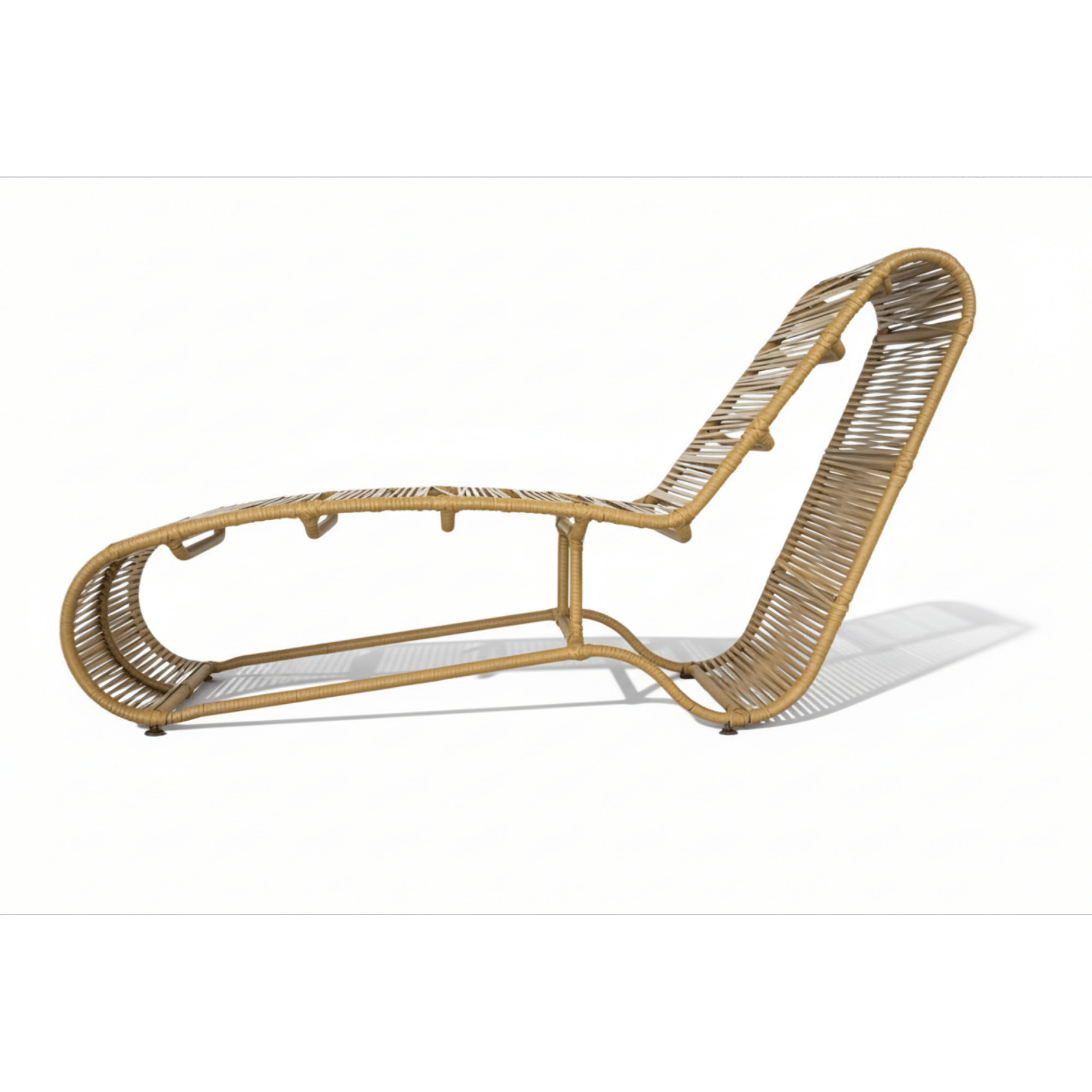 Asoleadora para exterior fabricado en estructura metálica reforzada con pintura electrostática, tejida en rattan plano sintético color arena, ideal para espacios al aire libre como jardines, terrazas, balcones, zonas húmedas y áreas de piscina.
