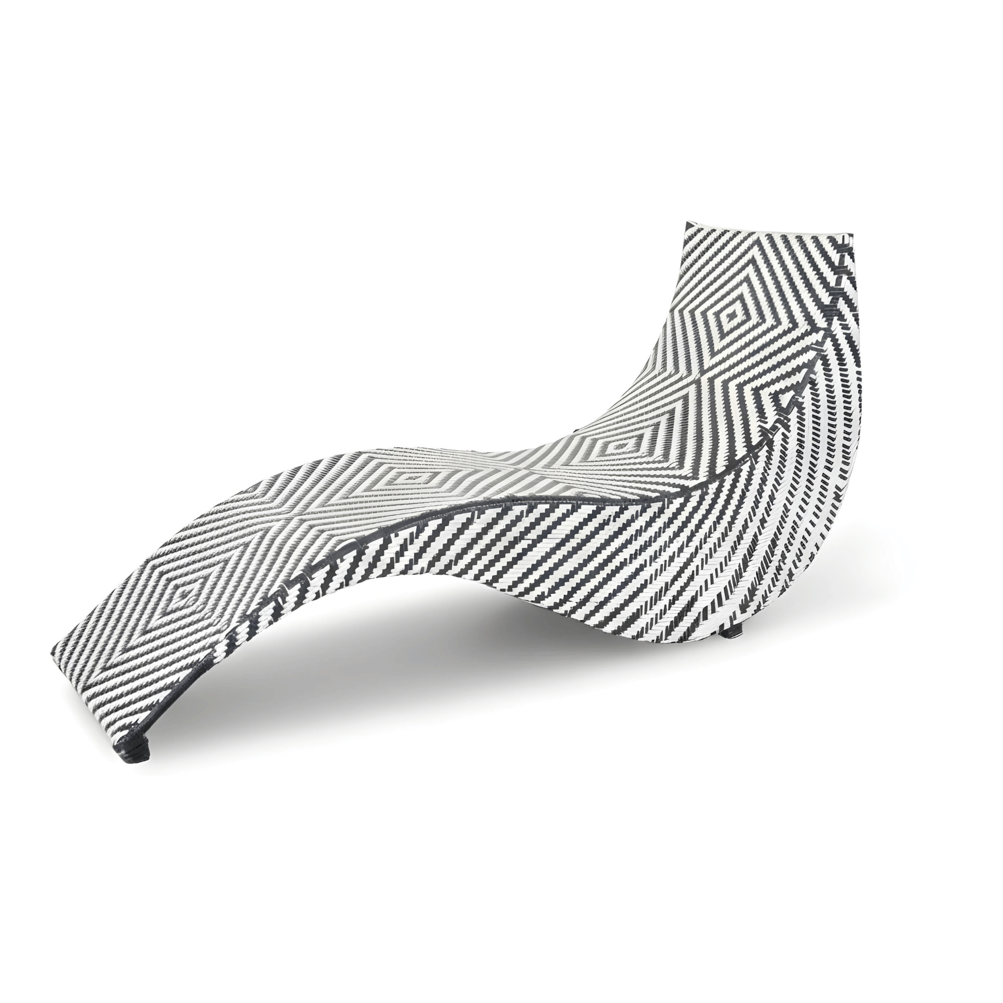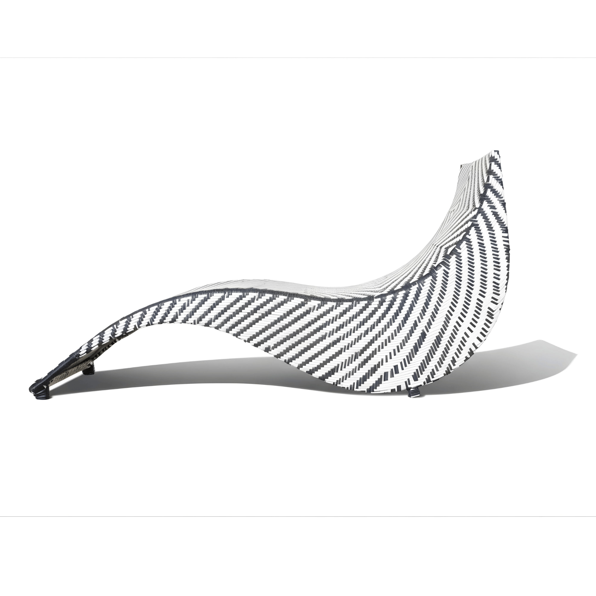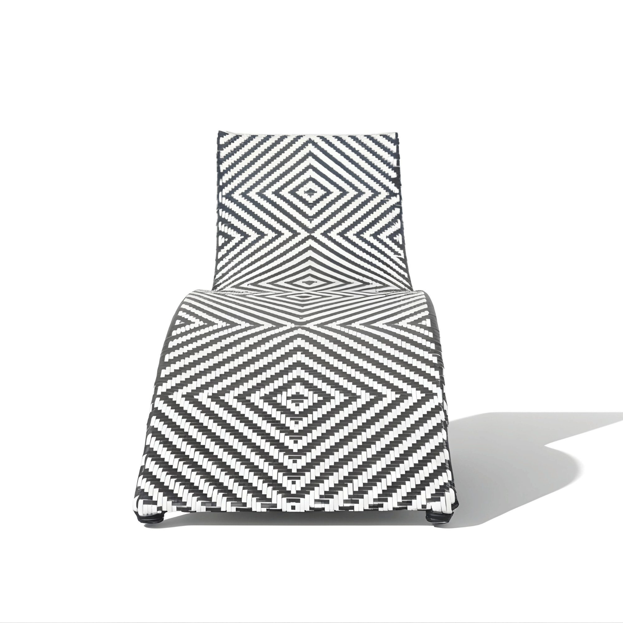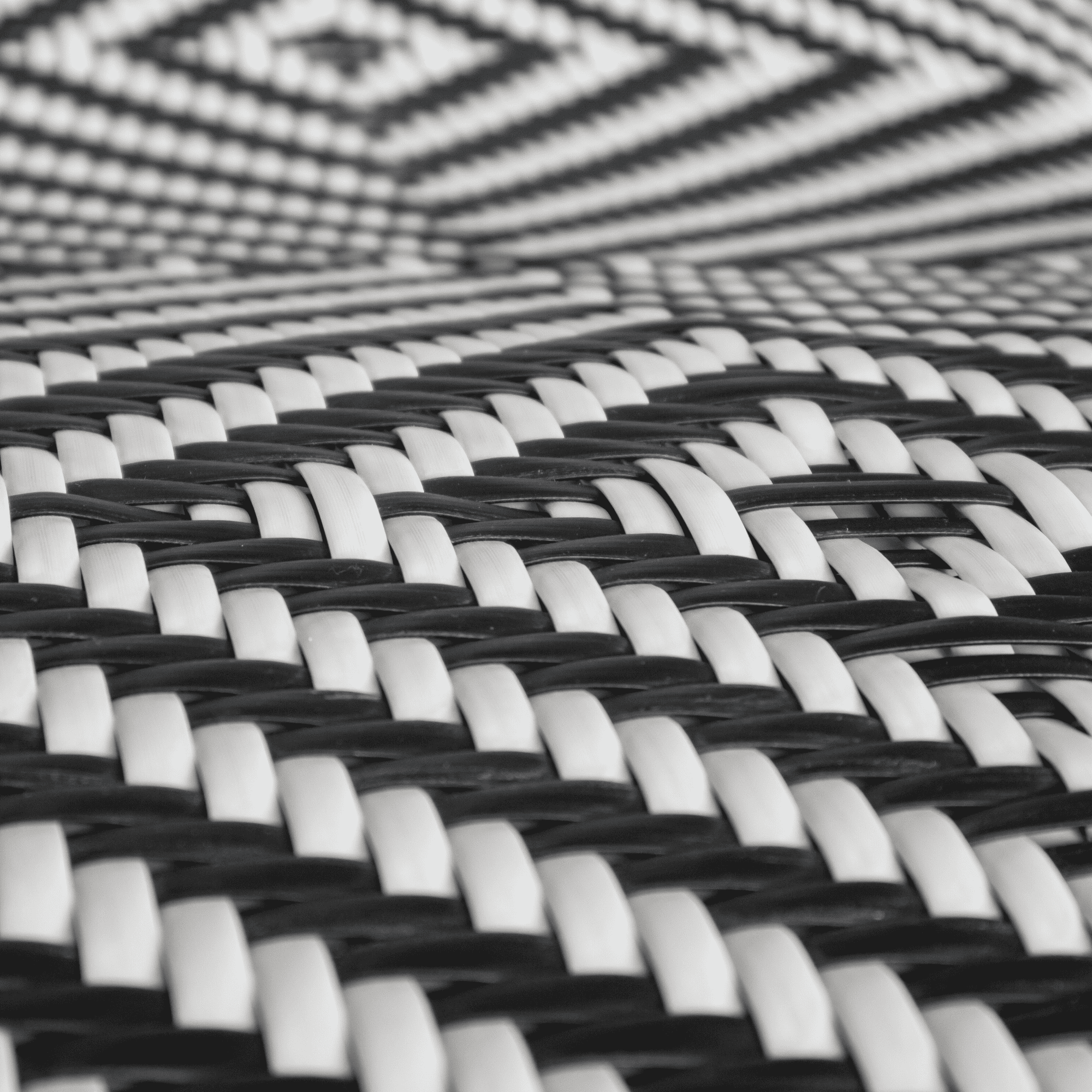 Fabricada en estructura de aluminio y tejida en rattan sintético plano estilo “espina de pescado”, ideal para terrazas, piscinas, balcones y zonas húmedas.